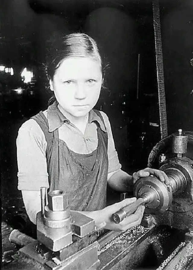 15-летняя девушка за токарным станком. Блокадный Ленинград. 1943 г.