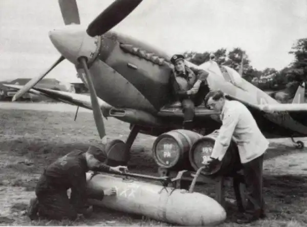 Британские пивовары заполняют подвесной бак самолёта ... пивом! В подарок воюющим в Нормандии солдатам. Вторая мировая война. 13 июня 1944г.