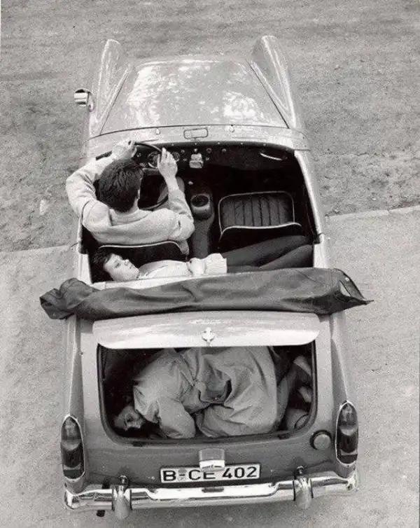 Известный немецкий автогонщик Ханс Херманн, на трассе Берлинского автодрома, 1959 год, ФРГ. Тогда у его болида, на скорости 280 км отказали тормоза и он направил машину в мешки с соломой.