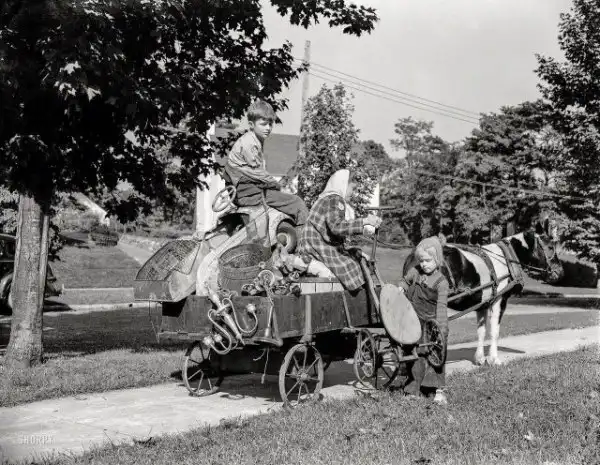 Дети собирают металлолом для нужд армии, в городском округе Роанок, штат Вирджиния, октябрь 1942 года.
