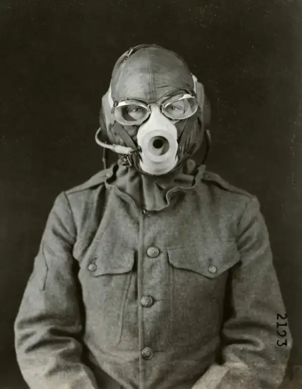Летчик авиационной службы, армии США в кислородной маске, 1919 год.