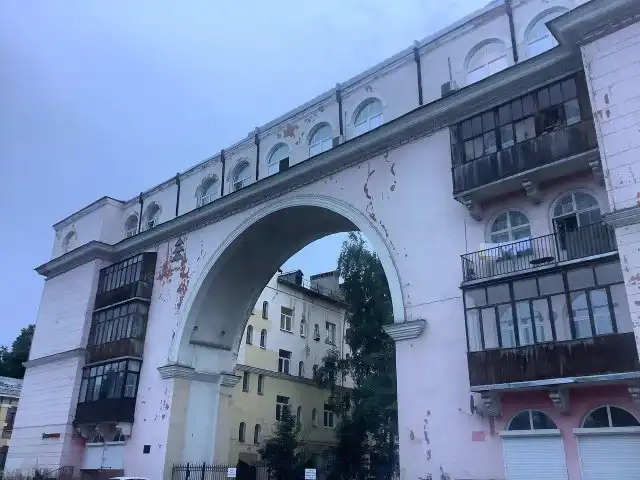 Дом 1934 года с огромной аркой в Ярославле. Для его строительства были снесены две церкви.