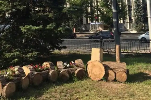 В Саратове коммунальщики срубили дерево и сделали из него паровозик.