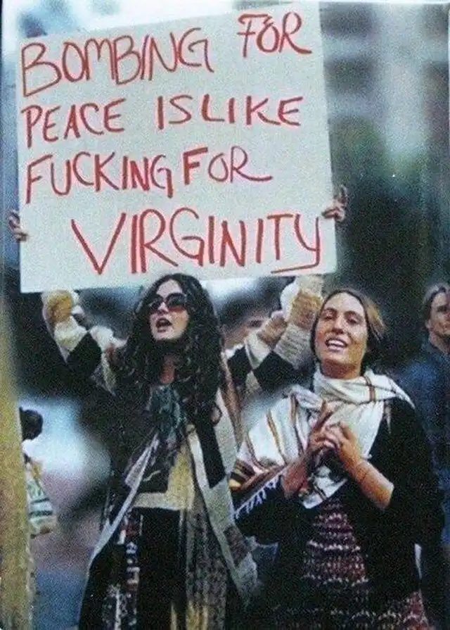 Легендарный девиз хиппи - «Бомбить ради мира - то же самое, что трахаться ради девственности». США, 1970-е.