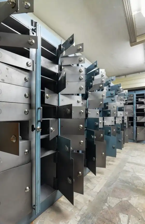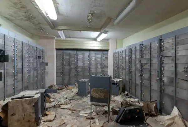 На кадрах запечатлены помещения с мощными стальными дверями, комнаты с депозитарными ячейками, сами ячейки, а также прочее оборудование, к примеру, металлический шкаф, в котором хранились инкассаторские мешки и бронежилеты. «Почти везде работало освещение после того, как мы включили его в щитке», — отметил фотограф.