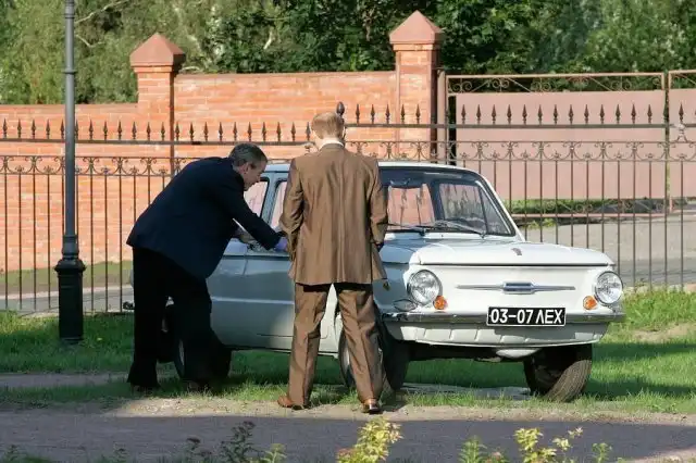 Владимир Путин показывает Джорджу Бушу свой первый автомобиль "Запорожец" 1972 года выпуска. Стрельна, 2006 год
