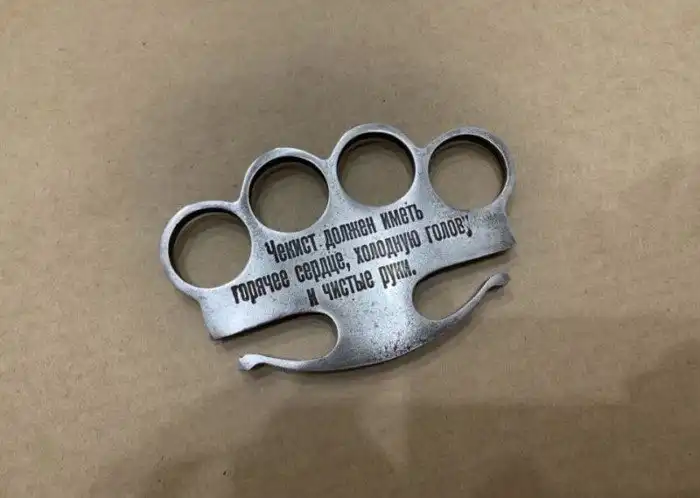 На торце кастета указано, что он был изготовлен на Златоусовской оружейной фабрике