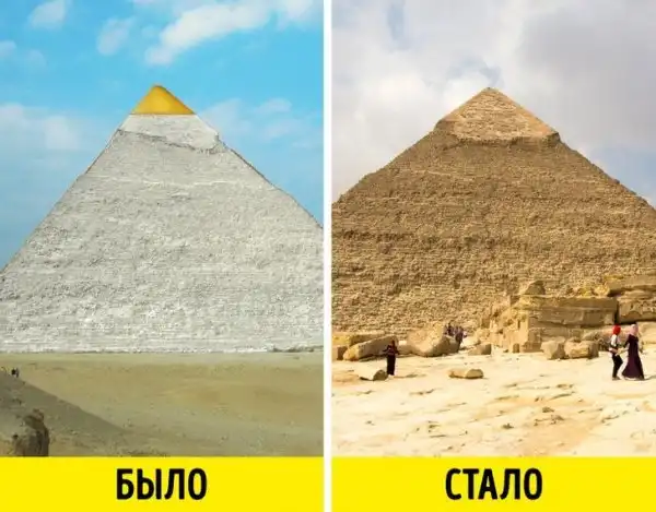 Пирамида Хеопса была облицована белым известняком, а сверху находился позолоченный камень