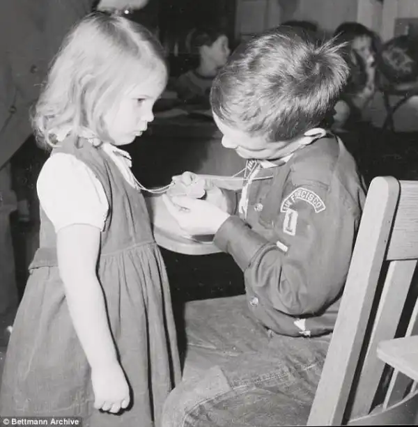Дети рассматривают жетоны, 1950–е годы, США