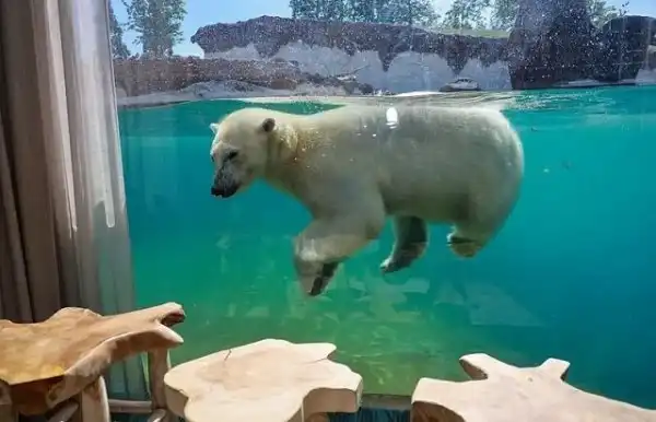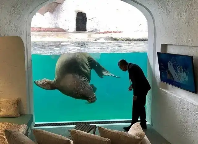 Постоялец может любоваться бурыми медведями, тиграми, морскими львами, волками, моржами и другими животными. Всего предлагается восемь вариантов размещения. Можно выбрать гостевой домик или номер "люкс". Для каждой локации имеются разные виды. Так, например в люксовых номерах "Земля холода" постояльцы любуются на подводную жизнь морских львов и белого медведя: окна выходят на бассейны с животными.