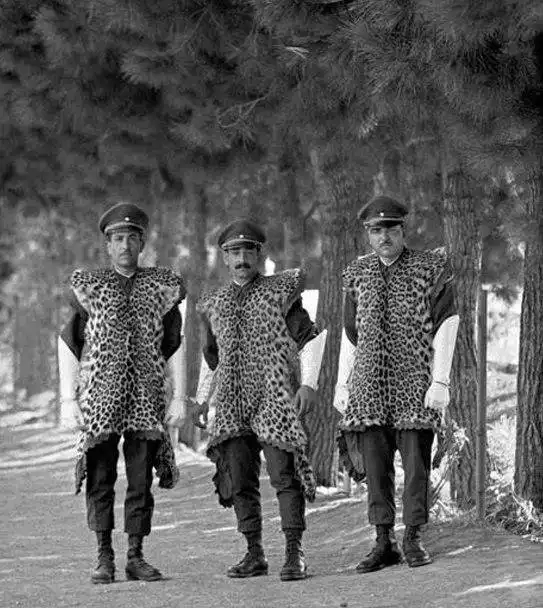 Это бойцы элитного отряда, иранского шаха Мохаммеда Реза Пехлеви в униформе из леопардовых шкур, Тегеран, 1960 год.