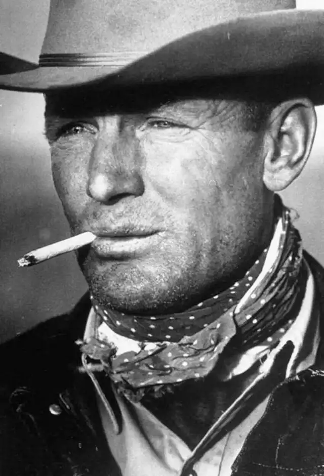 39-летний техасский ковбой Кларенс Хейли, образ которого был использован для рекламы сигарет Marlboro, 1949 год.