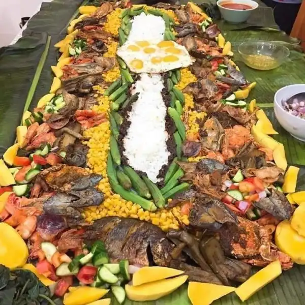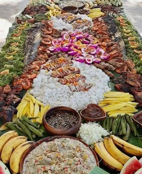 Такой способ еды часто используют на Филиппинах, накрывая стол банановыми листьями и выкладывая еду ярусами