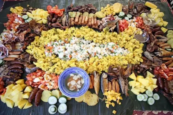 Еда, которая подается на столах, без участия приборов называется Boodle fight (дословно борьба с пуделем)