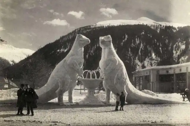 Одни из победителей конкурса снежных скульптур в Давосе, Швейцария, 1914 год.