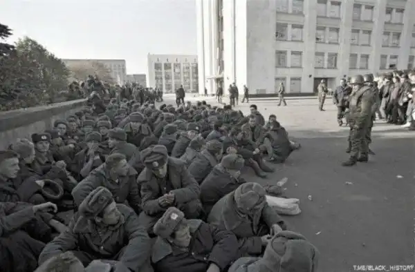 Арестованные милиционеры из охраны Верховного Совета, Москва, 4 октября 1993 года.