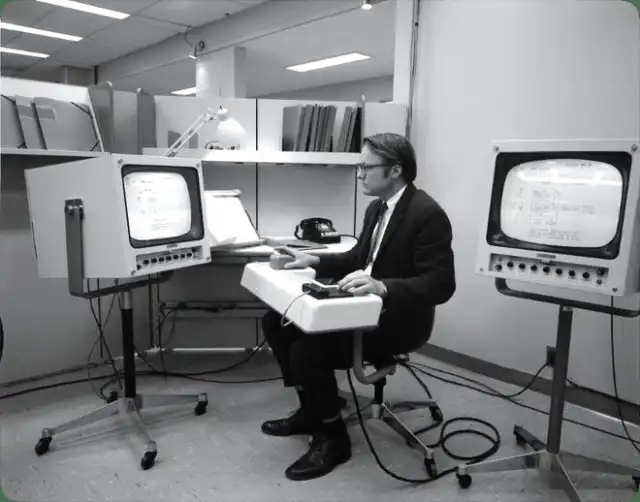 Уильям Инглиш демонстрирует первую "мышь", 1968 год, США