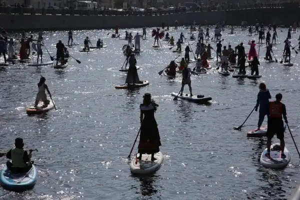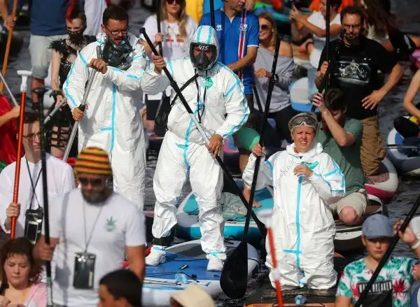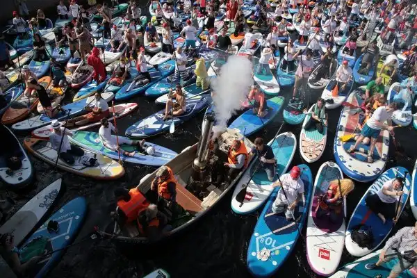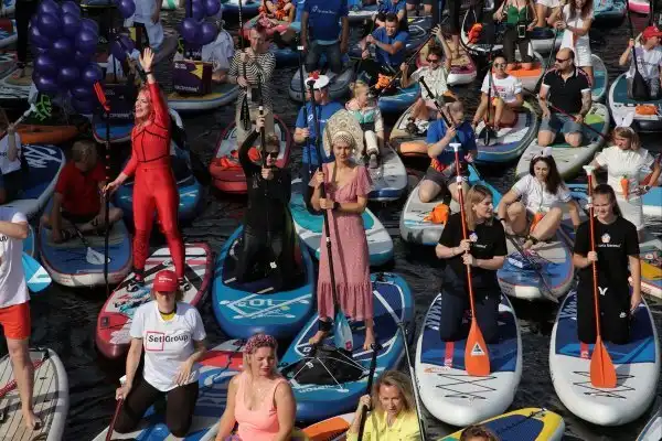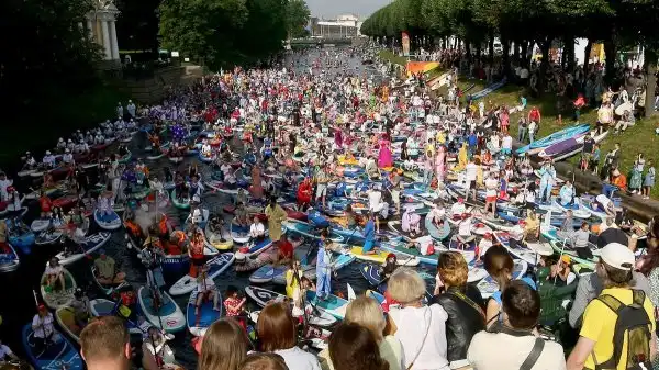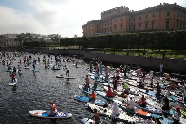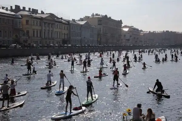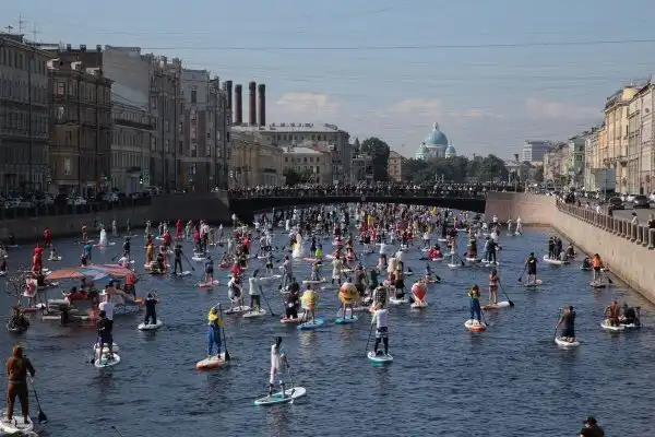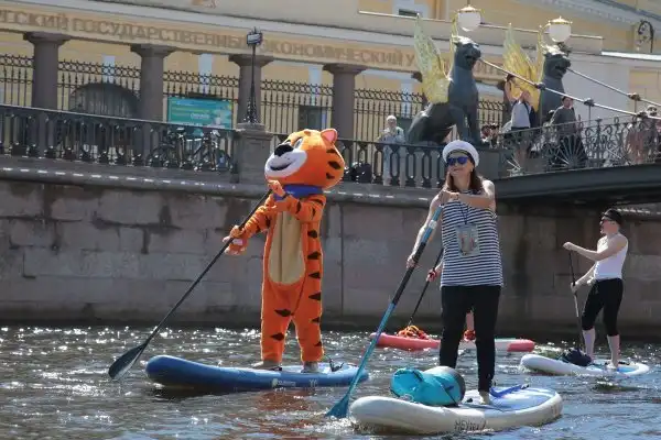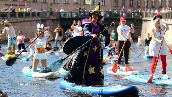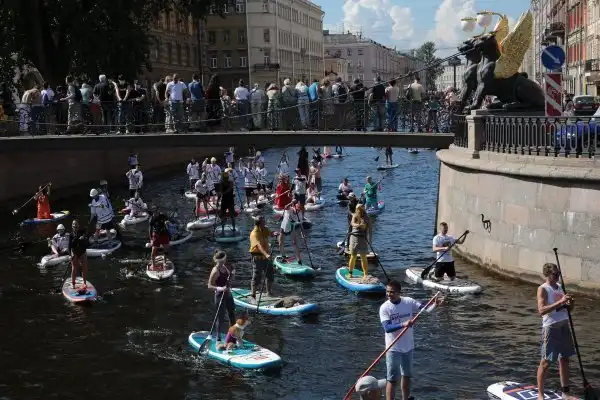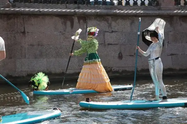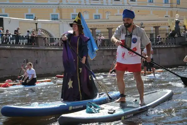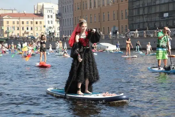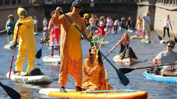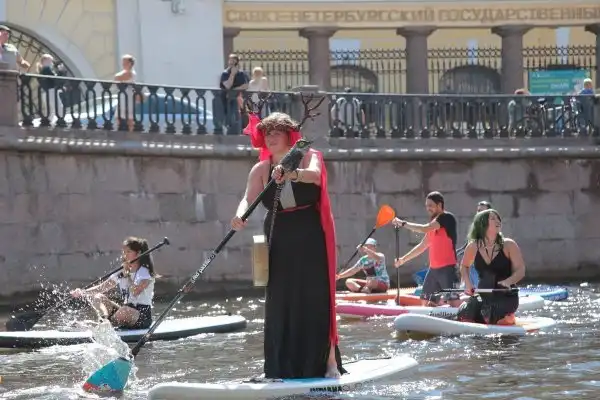 В Санкт-Петербурге прошел пятый фестиваль сап-серфинга "Фонтанка-SUP". Собралось около трех тысяч участников - это новый рекорд фестиваля. Кто-то только не прокатился по Неве. От разнообразия персонажей глаза разбегаются. Предлагаем посмотреть на самых ярких участников фестиваля и оценить масштаб мероприятия.