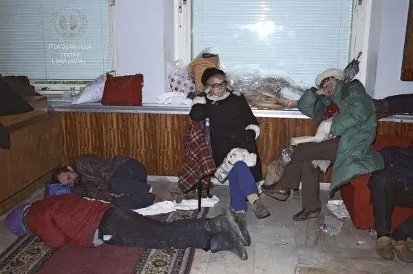 Сторонники Верховного Совета России спят в здании Белого дома, за сутки до его расстрела, октябрь 1993 года.