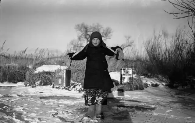 Солонька Кустова несет воду с речки, конец 1930–х годов, село Романовка, Маньчжурия