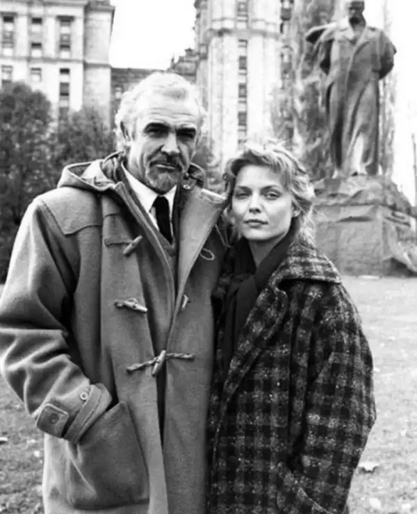 Шон Коннери и Мишель Пфайффер перед гостиницей "Украина", 1990 год, Москва
