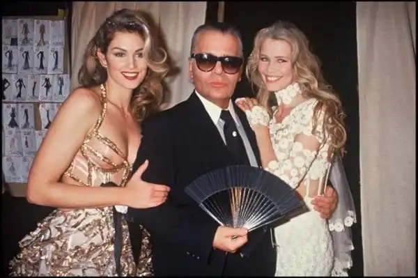 Синди Кроуфорд, Карл Лагерфельд и Клаудиа Шиффер, 1993 год, Франция