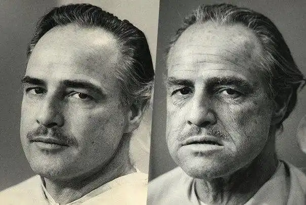 Марлон Брандо до и после грима на съемках фильма "Крестный отец". Гример Дик Смит, 1972 г.