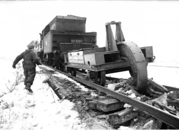 Schienenwolf - рельсовый волк, который использовался нацистами для разрушения советских железных дорог, СССР, 1945 год.