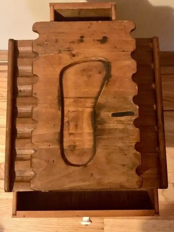 Ответ: это ящик для табачных трубок. Сверху место для трубки или же пепельницы, слева и справа ящики для других трубок или инструментов для их прочистки, другие ящики для пепла и мусора.