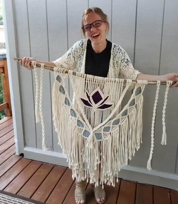 Макраме «Лотос», но малость перестаралась с размерами. Очень хотела произвести впечатление на друга.