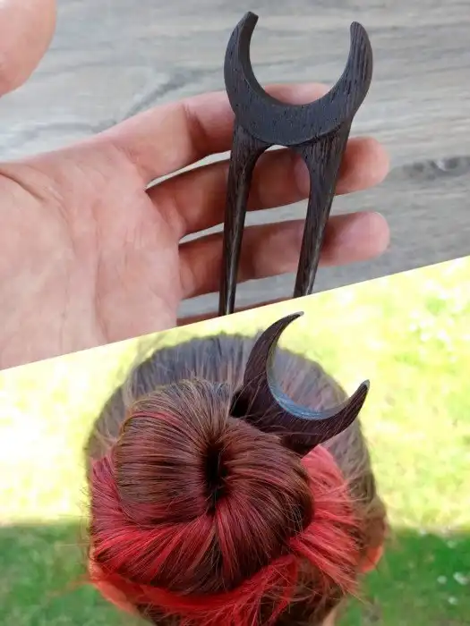 Крутая шпилька для волос, ручная работа по дереву, с большим полумесяцем на вершине