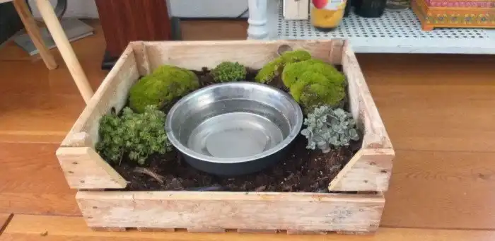 1. "Когда наш пес пьет воду, то вечно разливает ее вокруг. Тогда моя девушка превратила его миску в мини-сад"