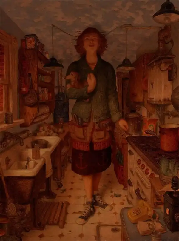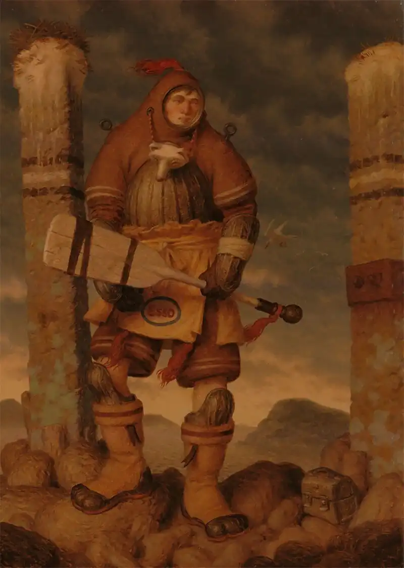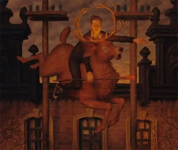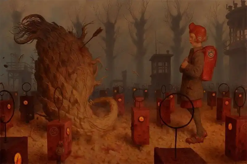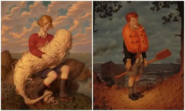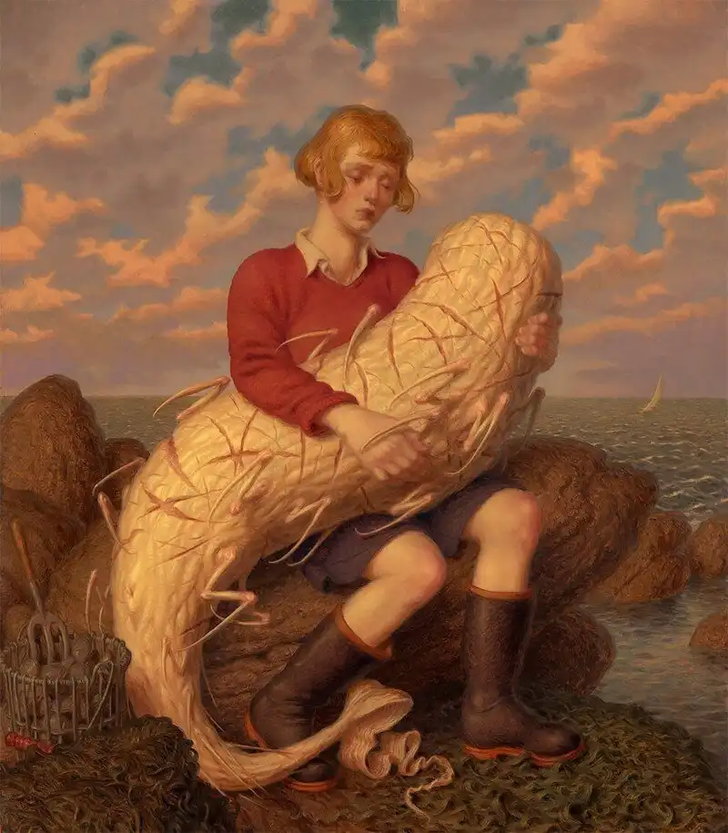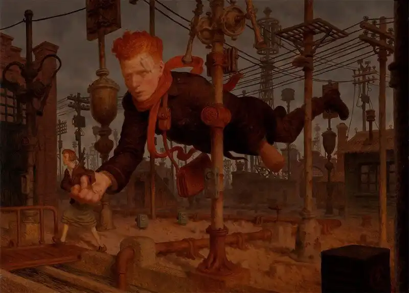 Работы Питера Фергюсона - это творческая смесь фантастического и причудливого. Художник умело и тонко миксует технологии и повседневных персонажей, мрачные фоны и невообразимых существ, которых создала его фантазия. "Благодаря сложной композиции и технике, его работы вызывают ощущение давно потерянных магических произведений, найденных в пыльном углу библиотеки клуба исследователей," - пишут про Фергюсона.
