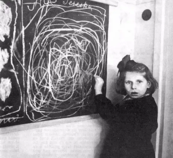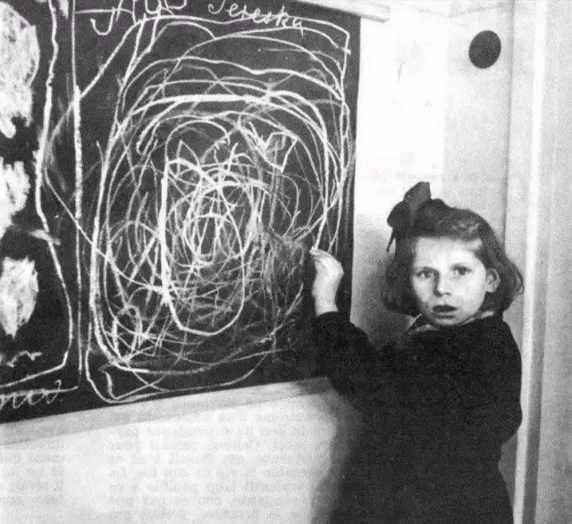 Польская девочка, выросшая в концлагере, рисует свой дом. 1948 год