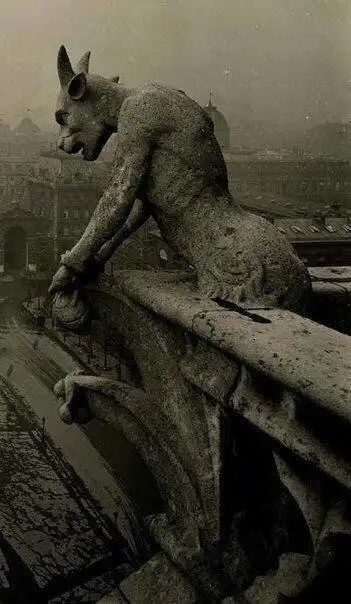 Горгулья Нотр-Дама, смотрящая на Париж, Франция, 1920 года.