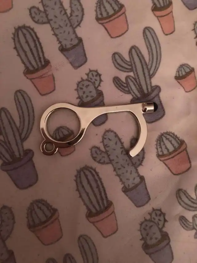 Это germ key - приспособление, с помощью которого можно повернуть дверную ручку, не прикасаясь к ней самой.