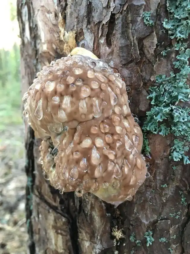 Гриб-трутовик, выделяющий избыточную влагу - выглядит жутковато.
