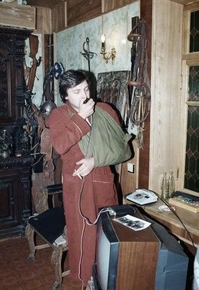 Александр Невзоров говорит по рации в своем доме, после покушения, 1990 год