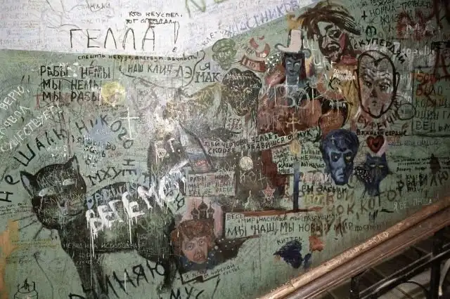 Разрисованные поклонниками творчества Михаила Булгакова стены в подъезде дома №10 по Большой Садовой улице, где жил и работал писатель. Москва, 1990 год.