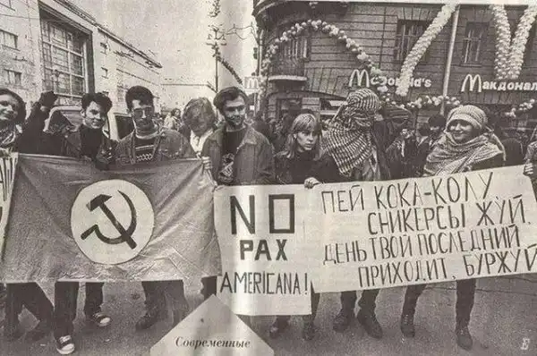 Протест против открытия первого МакДональдса в Санкт-Петербурге, 10 сентября 1996 года.