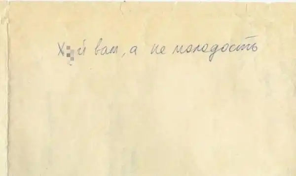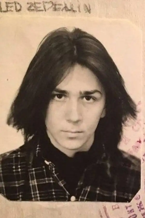 Фотография Сергея Шнурова из личного архива. Сверху название известной группы Led Zeppelin написанное с ошибкой, конец 80-х годов.