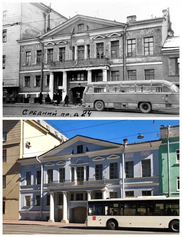 Только что построенный жилой дом на Кировском (Каменноостровском) проспекте.