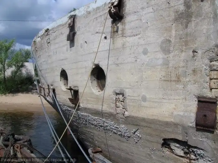 На корабли железобетон двинула война - нехватка стали и ее дороговизна подвигли на поиски более удобного материала. А железобетон более стоек по сравнению со сталью к коррозии и прочим природным стихиям.
