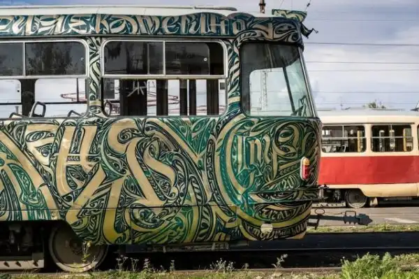 В рамках каллиграфического фестиваля STENOGRAFFIA художники разрисовали один из трамваев в Екатеринбурге. Лично мне нравится - всегда хотелось сделать этот вид транспорта более ярким и привлекательным, а не таким блеклым, которым он является сейчас.