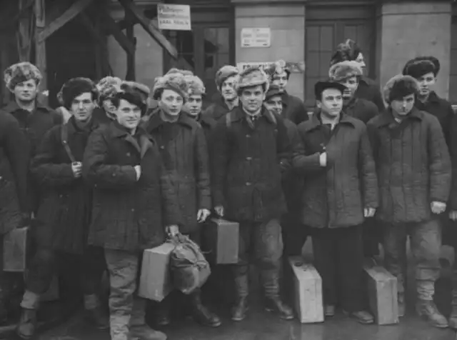 Группа итальянских военнопленных на пути домой из СССР, 1950 год, Вена
