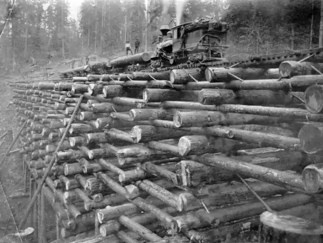 Бревенчатая эстакада через ручей Макбрайд к северу от Колумбия–Сити, начало ХХ века