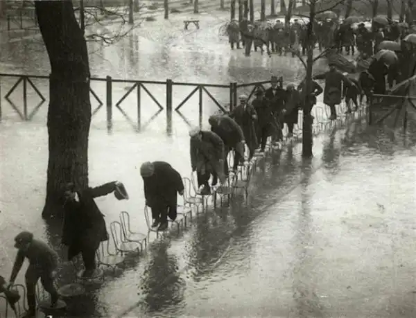 Парижане спасаются от разлива Сены. Ипподром Мезон–Лаффит, Париж, 1924 год.