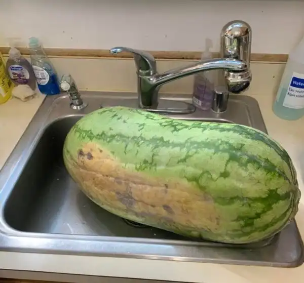Арбуз, который еле помещается в раковине