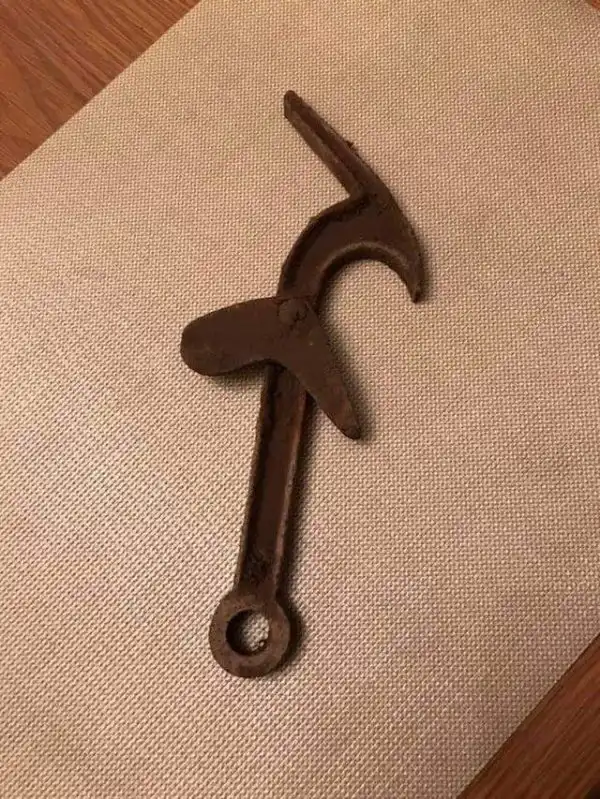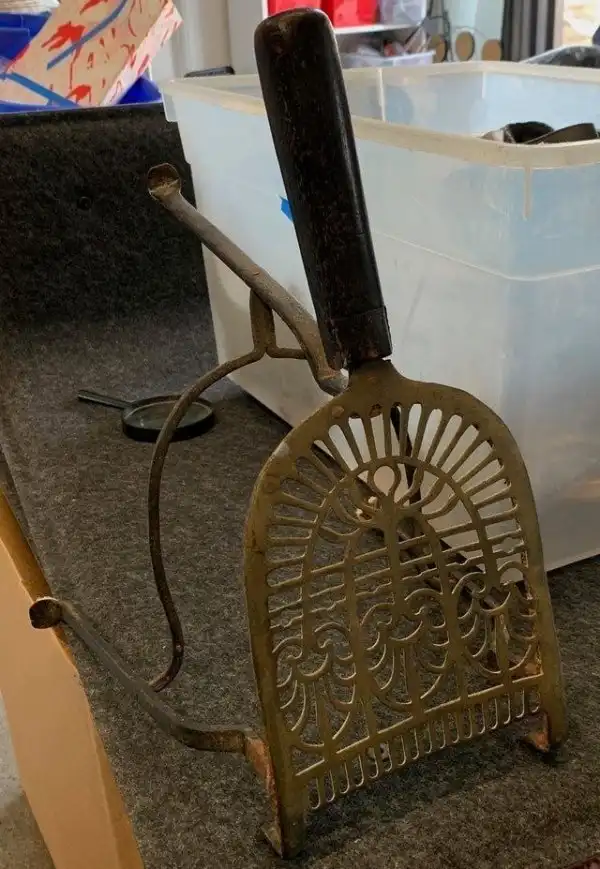 Ответ: это подставка под ведерко для угля. Также на нее вешают совок и кочергу. Если у вас был когда-то камин в доме, то не удивительно, что есть и такая подставка.