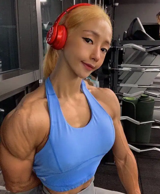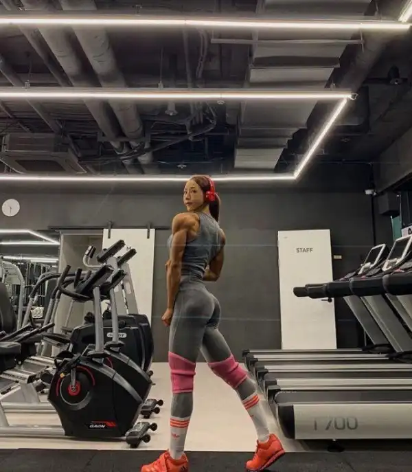 Зовут эту дамочку Ли Джин, она фитнес-тренер, модель и кто-то там еще. И жира подкожного у нее если и не 0% (это чисто физиологически невозможно), то очень и очень немного...